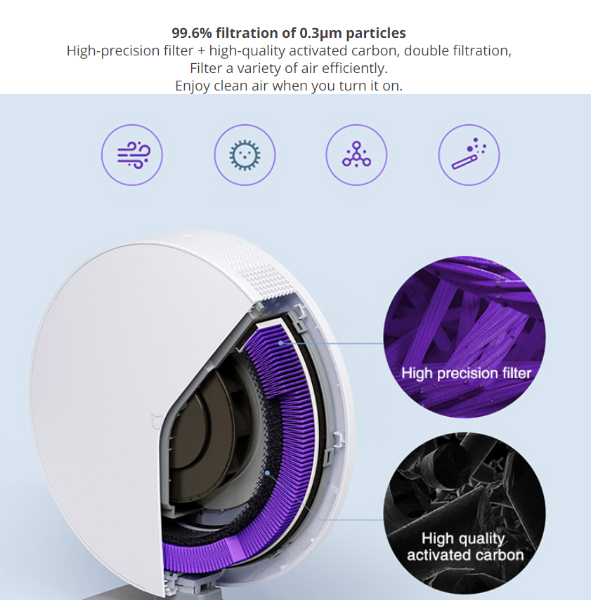 Az asztali légtisztító rendkívül hatékony szűréssel rendelkezik, amely akár a levegőben levő összes káros részecske 99,9%-át képes kiszűrni beleértve baktériumok, pollen, porszemcsék, gombák és atkákat is.